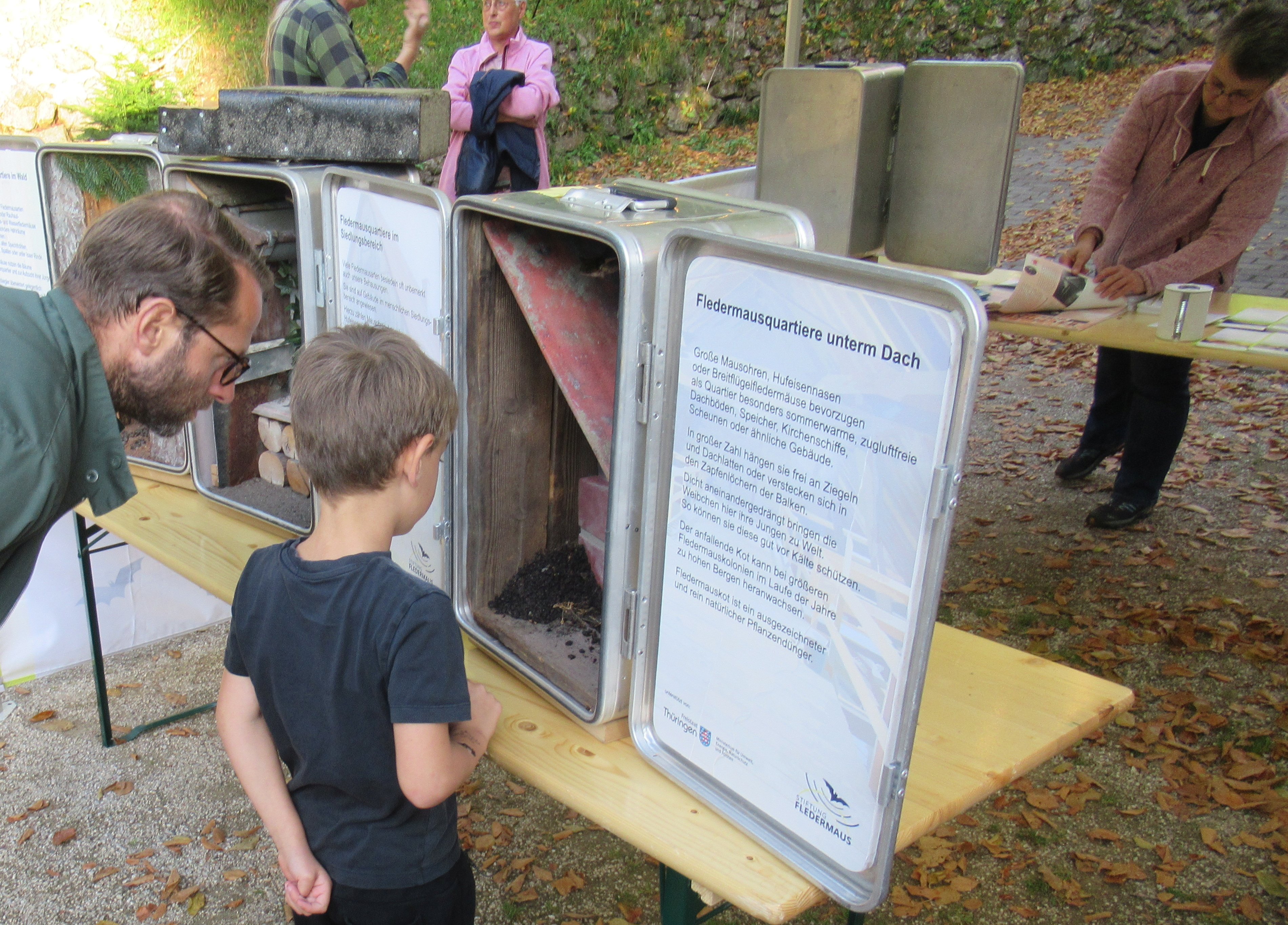 Liebe IFT-Mitglieder und Fledermausfreunde, der "Fledermaussommer" 2025 liegt weitgehend hinter uns, in dem es viele Aktivitäten aus unseren Reihen gab, um für den Fledermausschutz aktiv in der Öffentlichkeit eine Lanze zu brechen und somit Symphathiewerbung zu betreiben! Dabei stand nicht nur das letzte Augustwochenende im Fokus, an dem unter der Federführung des NABU die "European Batnight" ausgelobt wird, die jährlich traditionell rund um diesen Termin stattfindet: Immer wieder ein schöner Anlass, um die Fledermäuse spannend und positiv in den Blick zu rücken! Angefangen haben wir gemeinsam mit verschiedenen Partnern z. B. bereits zum "Langen Tag der Natur" Mitte Juni, z. B. in Lehesten, weiter über die 8. (!) Fledermausnacht im Hennebergischen Museum Kloster Veßra, die große Fledermausnacht in Hundhaupten bei Gera, aber auch in Saalfeld, Zella/Rhön, Gotha und Ilmenau, Bad Langensalza, Jena, Schweina bis hin zu Erfurt fanden Fledermaus-Veranstaltungen statt... Dabei ist diese Liste der Orte keineswegs vollständig, hiermit konnten nur einige genannt werden. Wir haben zusammen breit über Thüringen verteilt viele hunderte Menschen - und insbesondere Familien - erreicht und sie ganz bestimmt für Fledermäuse begeistern können. *Dafür an alle ein herzliches Dankeschön! * Ein besonders schöner Fernsehbeitrag entstand zur gut besuchten "Batnight" in Bad Langesalza am 29.08.2025: https://www.ardmediathek.de/video/mdr-thueringen-journal/batnight-in-bad-lan... Der MDR hatte auch das Batnight-Wochenende zuvor schon insgesamt gut mit Fledermausaufnahmen beworben: https://www.ardmediathek.de/video/mdr-thueringen-journal/veranstaltungstipps... In einem sehr gelungenen *MDR-Radiobeitrag* kamen unsere Aktiven *Ines Schmidt und Lutz Bachmann *aus Gera zu Wort, die über die Pflege von gestrandeten Fledermäusen bzw. der Fundtier-Hilfe berichteten. Eine schöne Würdigung für ihre wert- und mühevolle Arbeit, die stellvertretend für uns alle steht, die sich auf diesem Feld engagieren! Hier zum Nachlesen und -hören: https://www.mdr.de/nachrichten/thueringen/ost-thueringen/gera/fledermaus-hil... Nicht zuletzt haben schon jetzt praktische Aktivitäten des Herbst- und Winterhalbjahres begonnen, sich der Quartierbetreuung und Kotberäumung zu widmen.*Kerstin Frank und Horst Ertel *aus Jena von den Sielmanns Natur Rangern aus Jena haben erfolgreich im Rahmen des "Freiwilligentages Jena - Saale-Holzland-Kreis" einen Gemeinschaftseinsatz von Jung bis Alt ausgelobt, um zum wiederholten Male zuverlässig die Kahlaer Kirche vom angefallenen Mausohrkot zu reinigen, über den das Jenaer Fernsehen d.h. "Jena TV" berichtet hat mit einem tollen Interview mit Kerstin: https://www.jenatv.de/sendungen/3/5451/JenaJournal_vom_15_09_2025.html *Danke an alle Aktiven und viele Grüße vom Team der Stiftung FLEDERMAUS und vom IFT-Vortand* PS: Besonderen Anklang fanden in diesem Sommer die vier Dioramen-Boxen der Stiftung FLEDERMAUS (siehe Bilder), die einst von Thommy Faulstich geschaffen und nun durch die Präparationsfirma Lars Mandler "aufgefrischt" wurden. Sie können für Veranstaltungen bei der Stiftung FLEDERMAUS in Erfurt ausgeliehen werden. Dazu gibt es jede Menge neues Infomaterial der Stiftung zum Fledermausschutz und dazu Artensteckbrief-Karten: https://stiftung-fledermaus.de/infomaterial - auch kostenlos zum Abholen oder Bestellen: info@stiftung-fledermaus.de